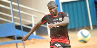 Harambee Stars midfielder Anthony Akumu shoots the ball during a training session on March 22, 2017 at Kenyatta Stadium, Machakos. PHOTO | CHRIS OMOLLO |