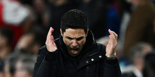 Arsenal manager Mikel Arteta reacts during their Uefa Champions League semi-final first leg tie against Paris Saint Germain at the Emirates Stadium in London, Britain on April 29, 2025.