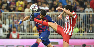 Barcelona's Uruguayan forward Luis Suarez (left) vies for the ball with Atletico Madrid's Montenegrin defender Stefan Savic during their Spanish Super Cup semi-final match on January 9, 2020, at the King Abdullah Sport City in the Saudi Arabian port city of Jeddah. Suarez has joined Atletico from Barcelona.
