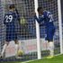 Sheffield United's Scottish striker Oliver Burke (centre) celebrates with teammates after scoring their second goal during their English Premier League match against Manchester United at Old Trafford on January 27, 2021.