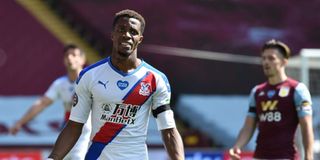 Crystal Palace's Ivorian striker Wilfried Zaha reacts during their English Premier League match against Aston Villa at Villa Park in Birmingham, central England on July 12, 2020.