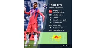 Thiago Silva's statistical rating on his debut. SofaScore |