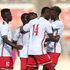 Kenya's winger Cliff Nyakeya (centre) celebrates with teammates after Zambia's Mwape Tandi turned the ball into his own net during their international friendly match at Nyayo Stadium on October 9, 2020.