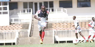 Timothy Otieno sprints during Harambee Stars training session at Moi International Sports Centre, Kasarani on October 6, 2020.