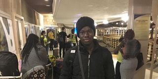 Tobias Otieno at the Jomo Kenyatta International Airport on September 20, 2020 ahead of his departure to the U.S.