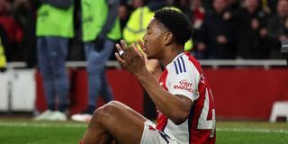 Arsenal's Myles Lewis-Skelly celebrates scoring their third goal against Manchester City during their English Premier League match at the Emirates Stadium, London, Britain on February 2, 2025.