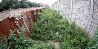Weeds around the fence of Dandora Stadium in this photo taken on May 23, 2020.