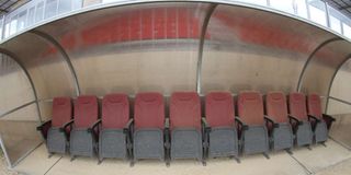 A fish-eye shot of the technical benches at Dandora Stadium in this photo taken on May 23,2020.