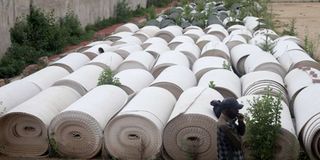 Rolls of artificial turf that were supposed to be laid on the surface of Dandora Stadium in this photo taken on May 23, 2020.