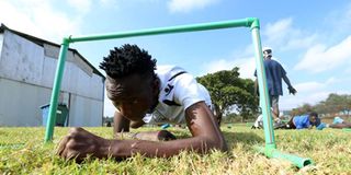 Gor Mahia player Dickson Raila during a light training session at Riverside grounds in Ruaka, Nairobi on September 22, 2020.