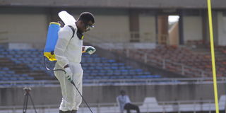 Balls are disinfected before Harambee Stars' training session at Moi International Sports Centre, Kasarani on October 6, 2020.