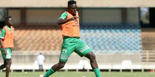Harambee Stars defender Brian Mandela in action during the team's training session at Moi International Sports Centre, Kasarani on October 7, 2020 ahead of their international friendly tie with Zambia on Friday.
