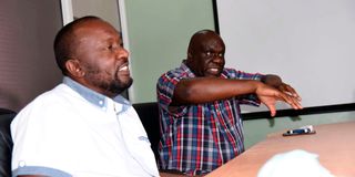 Former Gor Mahia Treasure Onyonyi Kashujaa(left) and former Chairman Vincent Kashujaa during an interview at Nation Centre in Nairobi on June 9,2020.