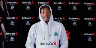 New Gor Mahia signing Cameroonian midfielder Bertrand Konfor during his unveiling in Nairobi on August 31, 2020.