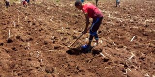 Former Harambee Starlets skipper Mary Kinuthia works in her farm in Kitale.
