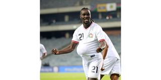 Harambee Stars striker John Avire celebrates his goal against Namibia during their 2025 Africa Cup of Nations qualifier at the Orlando Pirates Stadium in Johannesburg, South Africa on September 10, 2024.