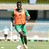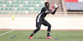 Kenya's goalkeeper Ian Otieno saves a shot during the warm up before their friendly match against Zambia.
