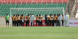 The Zambians seek divine intervention before they feel the pitch at Nyayo National Stadium ahead of their match against Kenya.