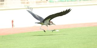 A Marabou stork also can't resist the urge to join the action at Nyayo Stadium.