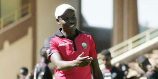 Harambee Stars coach Stanley Okumbi reacts during a training session on March 15, 2016 at Safaricom Stadium, Kasarani.