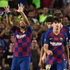Barcelona's Uruguayan forward Luis Suarez (left) celebrates after scoring a goal during their 54th Joan Gamper Trophy friendly match against Arsenal at the Camp Nou stadium in Barcelona on August 4, 2019.
