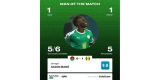 Sadio Mane's stats against Burkina Faso. sofascore.com|