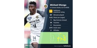 Michael Olunga's stats from the match. SofaScore.Com |