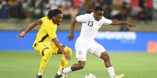 Kenya’s Erick Ouma (right) plays against Zimbabwe in their 2025 Afcon qualifier in South Africa on November 15, 2024.