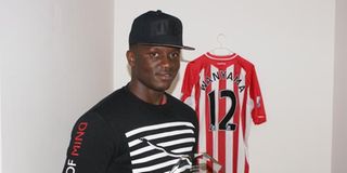 Kenya's Southampton midfielder Victor Wanyama poses with the African EPL Player of the Month award for September in London on October 23, 2014. PHOTO | COURTESY