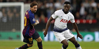 Tottenham Hotspur's Kenyan midfielder Victor Wanyama (right) vies with Barcelona's Argentinian striker Lionel Messi during their Champions League group B match at Wembley Stadium in London, on October 3, 2018. PHOTO | ADRIAN DENNIS |