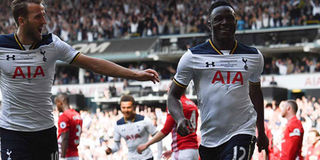 Tottenham Hotspur's Kenyan midfielder Victor Wanyama (right) celebrates scoring the opening goal with English striker Harry Kane during their English Premier League match against Manchester United at White Hart Lane in London, on May 14, 2017. PHOTO | BEN STANSALL |
