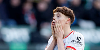 Liverpool's James McConnell reacts after missing a chance to score during their FA Cup Fourth Round match against Plymouth Argyle at Home Park, Plymouth, Britain on February 9, 2025.