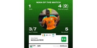 Man of the match, Ivory Coast's Nicolas Pepe stats against Sierra Leone. sofascore.com|