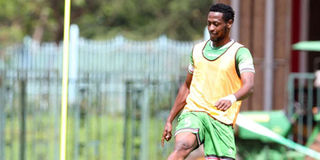 Harambee Stars striker Masoud Juma takes part in a training session at Moi International Sports Centre, Kasarani in Nairobi on May 28, 2019 ahead of the Africa Cup of Nations finals set for Egypt from June 22-July 19. PHOTO | CHRIS OMOLLO |
