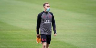 Martin Braithwaite and Rasmus Falk take part in the national football team's mixed zone and training in Elsinore, on September 1, 2020 ahead of the UEFA Nations League football match Denmark against Belgium.