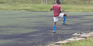 A footballer warms up on the dilapidated playing surface at the Nairobi City Stadium on May 20, 2020. PHOTO | DAVID KWALIMWA | NATION MEDIA GROUP