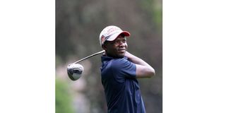 Isaac Makokha of Vet Lab Sports Club follows the progress of his tee short from the first tee during semi-finals of Kenya Amateur Matchplay Championship at Veterinary Laboratory Sports Club on September 19, 2020.