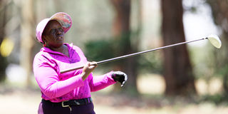 Ruiru Sports Club's lady captain Edith Ngugi tees off during the the Ruiru Classic Golf tournament at the par 72 Ruiru Sports Club on August 29, 2020.