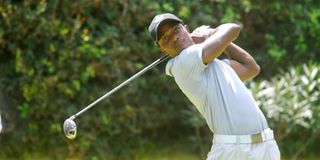 Chris Andrea tees-off from the first tee during Safari Golf Tour Round Two on January 14, 2019 at Muthaiga Golf Club.