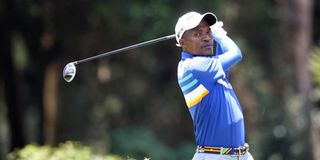 Vet Lab Sports Club Robinson Owiti follows his shot from 18th hole fairway during the fourth day of first leg of Safari Tour golf series, at Limuru Country Club on October 7, 2020.