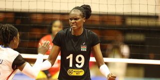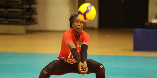 Malkia Strikers setter Emmaculate Nekesa in action during their CAVB African Nations Championship quarter-final match against Nigeria at at the Palais polyvalent des sports (Paposy) Arena in Yaounde on August 22, 2023.