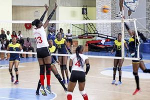 Corporal Michael Maina (left) follows the action during the KVF National League playoffs at KPA Makande Hall in Mombasa on Saturday.