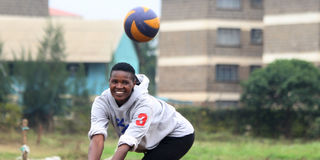 Kenya Prisons middle blocker Lorine Chebet receives the ball during a training session at the Nairobi West Prisons on September 10, 2020.