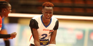 Kenya's Veronicah Adhiambo celebrates a point during their African Nations Championships Group B match against Rwanda at Palais Polyvalet Des Sports (Paposy) arena on August 16, 2023.