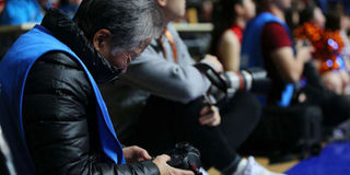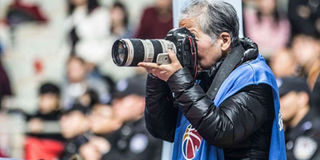 This photo taken on January 16, 2018 shows photographer Hong Nanli, 79, taking pictures during a basketball match in Shanghai. PHOTO | AFP