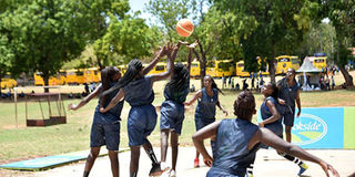 Mua Girls High School basketball players train on the eve of the Brookside Kenya Secondary Schools Sports Association (KSSSA) National Term One Games at Shimo la Tewa Secondary School in Mombasa on April 8, 2019.