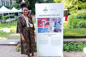 Kenya’s taekwondo Olympian Faith Ogallo poses for a photo before being inducted into the prestigious Olympians for Life programme in Paris, on Monday.