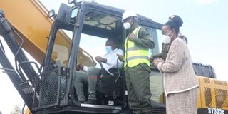 President Uhuru Kenyatta (left), Defence Cabinet Secretary Monica Juma (right) during the ground breaking ceremony for the construction of the ultra-modern Ulinzi Sports Complex at Langata Baracks, Nairobi on October 28, 2020.