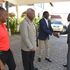 National Olympic Committee of Kenya (NOC-K) President Paul Tergat (left) welcomes Sports Cabinet Secretary Ababu Namwamba (second left) to a strategy meeting for the Paris 2024 Olympic Games in Nakuru on May 25, 2023 accompanied by NOC-K Secretary General Francis Mutuku (right) and Athletics Kenya President Jack Tuwei (second right).