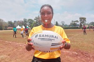 Eregi Secondary School’s fly half, Anne Nakhumicha, enjoyed the support of her parents in her matches. After Eregi from Western region defeated Gituamba Secondary School from Central 17-0 to qualify for quarter-final matches, her mother Judith Nalianya joined the team’s cheering squad in a jig.